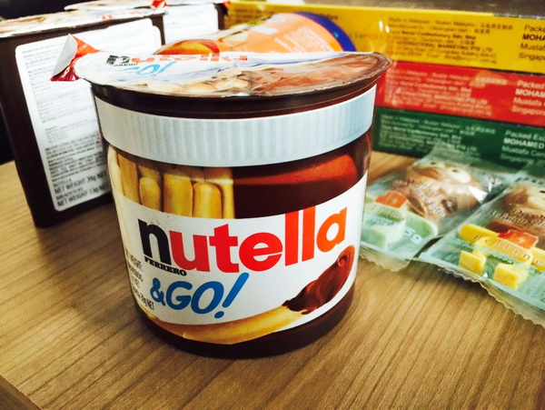 เราซื้อมาแค่นี้เองค่ะ นูเทลล่าแบบมีขนมปังกรอบจุ่มด้วย อร่อยจัง
