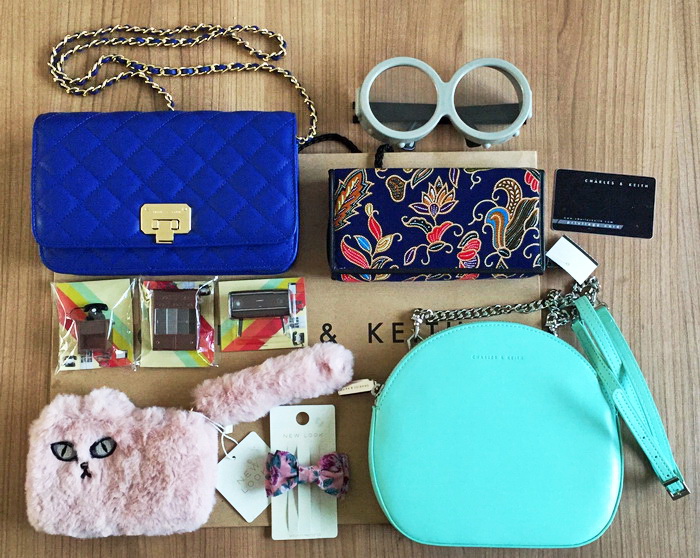 สุดท้ายคือกระเป๋า charles & keith ซื้อที่สนามบินค่ะ ได้ลด 10% จากบัตรที่เพื่อนให้ยืมมา กระเป๋าสะพายหนังสีน้ำเงิน และสีเขียวมิ้นท์ ราคาตกใบละ 1100 บาท สะพายข้างเล่นๆ ไปโน่นมานี่
