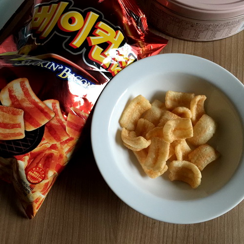 ขนมกรอบๆที่นี่ รสชาติจืดนะคะ ไม่จัดจ้านเหมือนเลย์บ้านเรา คุณต้องกินต่อไปเรื่อยๆ จนคำที่ 5 น่านแหละจะหยุดไม่อยู่และ มันค่อยๆ มีรสชาติกลมกล่อมขึ้นเรื่อยๆ คำต่อไป คุณจะมีความหวังว่า มันจะอร่อยขึ้นอีกมั๊ยๆ ? จนรู้สึกตัวอีกที คำถามนั้นยังอยู่ มันก็หมดถุงไปแล้ว