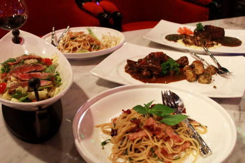 จัดหนักไป 5 เมนู พอดีวันนี้ท้องว่างมาทั้งวัน สปาเก็ตตี้เบคอนผัดพริกแดง สปาเก็ตตี้ผัดไท สลัด (Varano Salad) ไก่ตุ๋นซอสไวน์แดง และ สเต็กเนื้อ พร้อมไวน์แดงจิบกันเพลินๆ