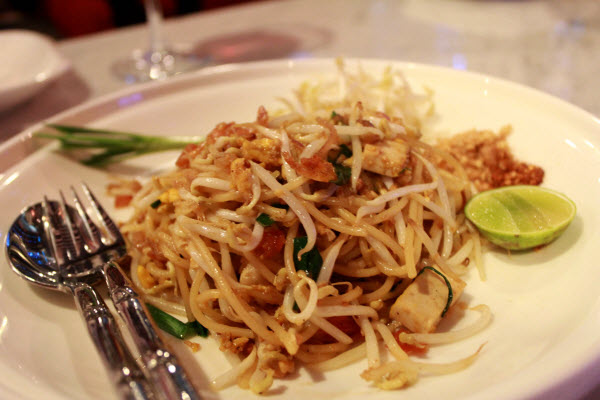 สปาเก็ตตี้ผัดไทย ไม่เคยทานผัดไทยที่ใช้เส้นสปาเก็ตตี้มาก่อน ไม่น่าเชื่อว่าเมนูฟิวั่นนี้จะเข้ากันอย่างมีเสน่ห์ ลืมประสบการณ์เวลาเราสั่งผัดไทยแล้วเส้นมาเป็นก้อนๆ ได้เลย รสชาติผัดไทยกำลังดี หวาน เค็ม นำ ตามด้วยรสเปี้ยวจากมะนาว และความเผ็ดจากพริกป่น พร้อมความันจากถั่วที่เจืออยู่เบาๆ (ตรงนี้อาจไม่ถูกใจเท่าไหร่สำหรับคนชอบรสจัดนัก) แถมหนักเครื่องใช้ได้ คำแรกที่ทานรู้สึกว่ามันกรอบนะ เพราะถั่วงอกผัดออกมาไม่สุกจนเกิดไป ทานกับเต้าหู้และไข่ที่นิ่มกำลังดีขับความกลมกล่อมและความอร่อยได้เป็นอย่างดี