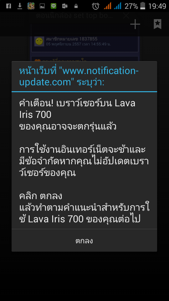 และก็มีประเภทที่ว่าหาว่าเครื่องเราล้าสมัยบ้างล่ะ ตรวจพบไวรัสมั่งล่ะ ให้เรากดตกลงเพื่อสแกนไวรัส (เกือบหลวมตัวกด "ตกลง" แต่เอ๊ะ ปุ๋มยกเลิกก็ไม่เห็นมี เท่ากับมันบังคับให้เราตกลงอย่างเดียว ไม่ว่าจะไปสัมผัสตรงไหนของหน้าจอคือตกลงอย่างเดียว