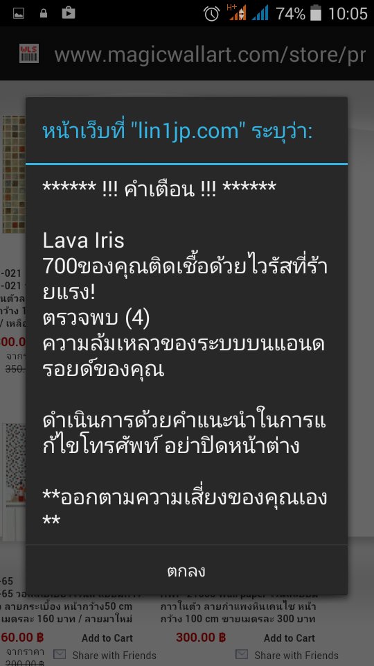 และก็มีประเภทที่ว่าหาว่าเครื่องเราล้าสมัยบ้างล่ะ ตรวจพบไวรัสมั่งล่ะ ให้เรากดตกลงเพื่อสแกนไวรัส  (เกือบหลวมตัวกด "ตกลง" แต่เอ๊ะ ปุ๋มยกเลิกก็ไม่เห็นมี เท่ากับมันบังคับให้เราตกลงอย่างเดียว ไม่ว่าจะไปสัมผัสตรงไหนของหน้าจอคือตกลงอย่างเดียว