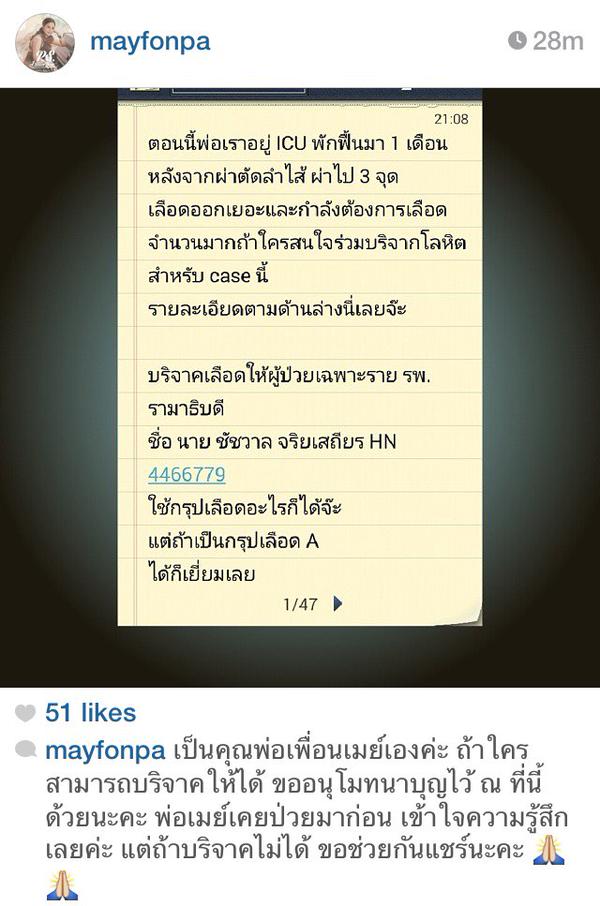พ่อเพื่อนคุณเมย์ The Voice กำลังต้องการรับบริจาคเลือด (กรุ๊ปอะไรก็ได้) ที่รพ. รามาธิบดี