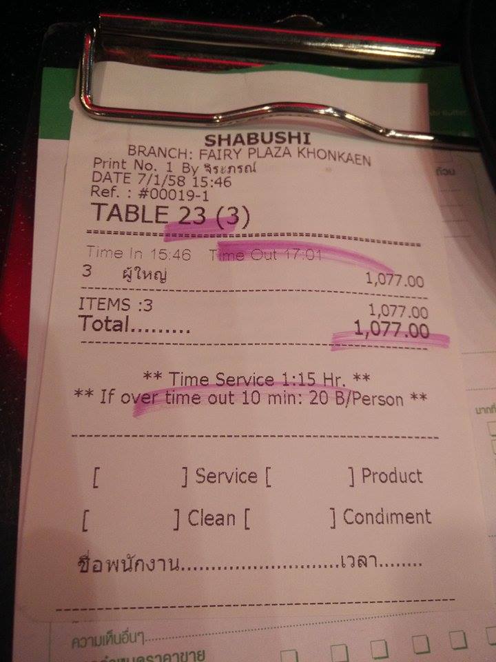พอเชคบิลเเล้ว จขกท.ก็ไปยืนเขียนติชมอยู่บริเวณหน้าเค้าเตอร์ให้พนักงานเห็น เเล้วส่งให้พนักงานคาดว่าคงเเอบอ่านเเหละ