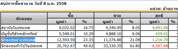 สรุปการซื้อขาย ณ วันที่ 8 ม.ค. 2558