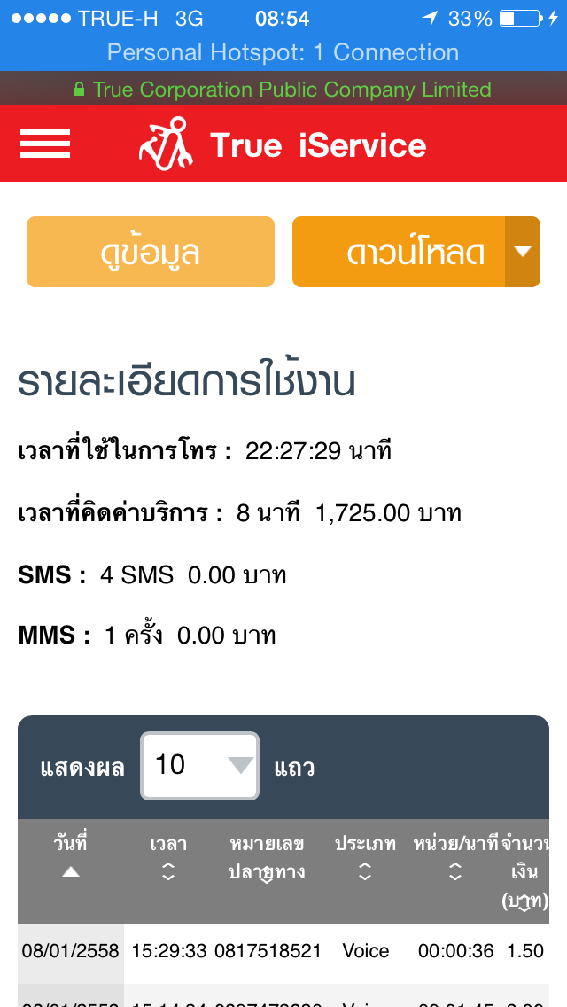 ซึ่งผมก็ไม่รู้ว่าเท่าไหร่จึงไป chat ถามใน app trueiservice พนักงานตอบกลับมาว่า ค่าบริการรอบเดือน ธ.ค. ถึงตอนนี้ 3000 กว่าบาท ผมก็ไปเช็คในรายงายสรุปยอดที่ยังไม่ตัดบัญชี ไล่รายวันตั้งแต่เดือน ธ.ค. สรุปได้ 1725 บาทตามภาพ