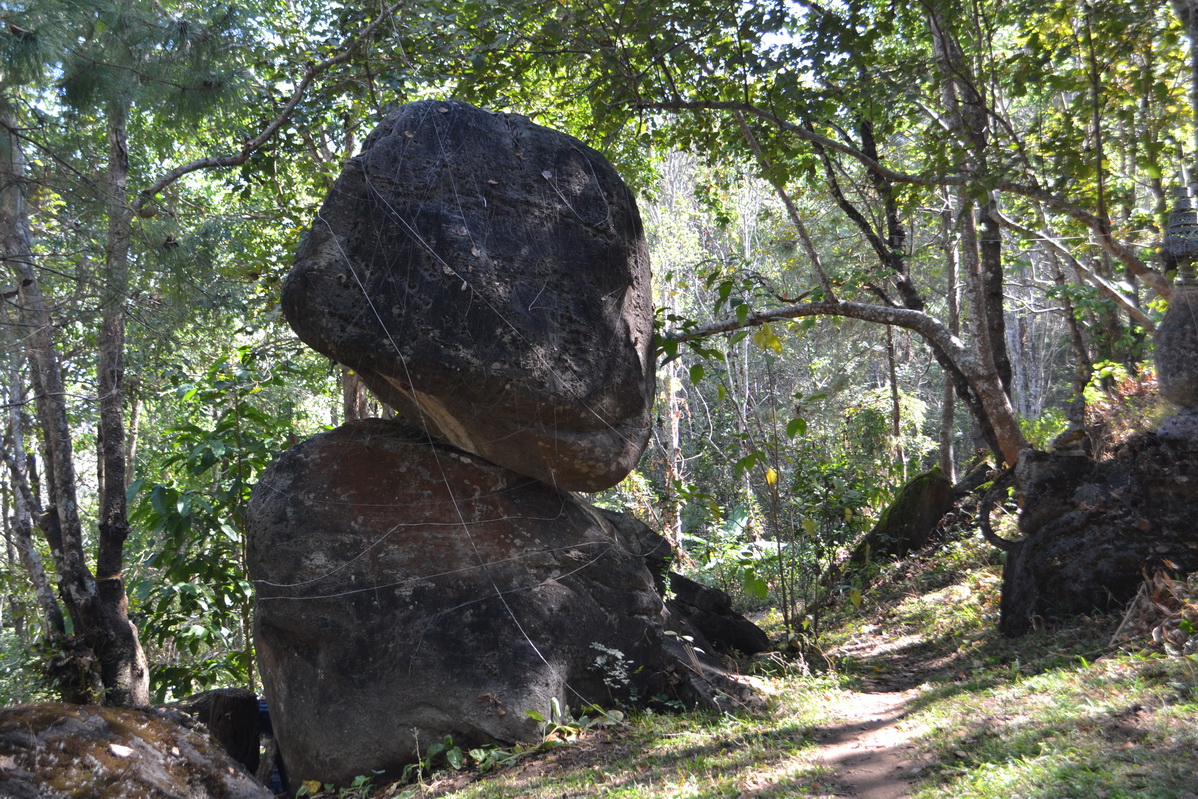 พอขึ้นไปถึงใช้เวลาเดินทางประมาณ 2 ชั่วโมง พอขึ้นไปก็เจอหินรูปร่างประหลาด รูปร่างคล้ายคนนั่งสมาธิ หรือเห็นว่าเป็นรูปอะไรกันบ้างครับ ชาวบ้านเรียกที่นี้ว่า "ผาหย่อง"