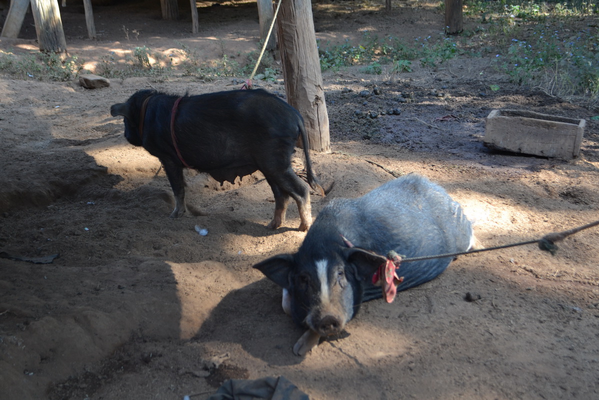 สัตว์เลี้ยงที่ชาวบ้านเลี้ยงไว้ มันคือ "หมู" ไว้ทั้งเป็นอาหาร ไว้ดูเล่น (ตอนผมเห็นมันวิ่งเร็วกว่าหมาด้วยซ้ำ.......)