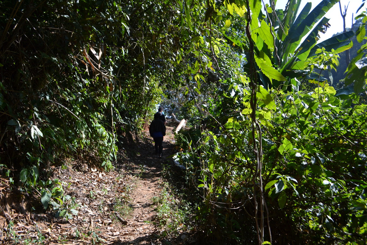 สภาพเส้นทางในการเดินทางไปเก็บสตอเบอรี่ครั้งนี้ หนทางค่อนข้างลำบาก เดินตามไหล่เขา ตลอดเส้นทางมีลำธารน้ำไหลผ่าน