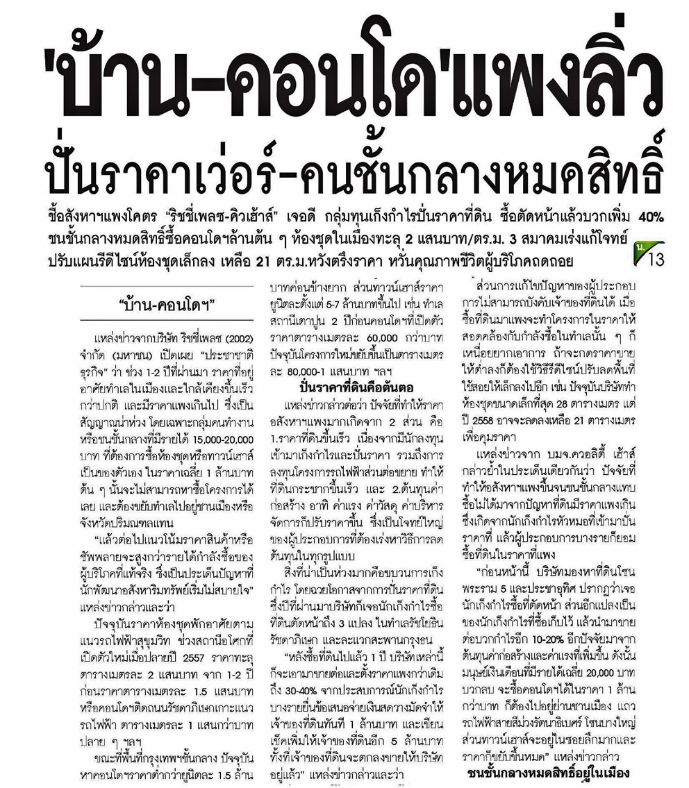 08/01/58 ประชาชาติธุรกิจ 'บ้าน-คอนโด'แพงลิ่วปั่นราคาเว่อร์-คนชั้นกลางหมดสิทธิ์