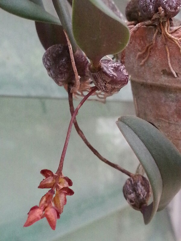 ปลูกต้นกล้วยไม้นี้มาปีกว่าๆ โดยไม่ทราบพันธ์ุ ครั้งนี้มีดอกออกมา ดอกขนาดเล็กมากประมาณไม่ถึง 1 ซม. สีชมพูสด อยากขอความช่วยเหลือ อยากทราบว่าพันธุ์อะไรค่ะ
