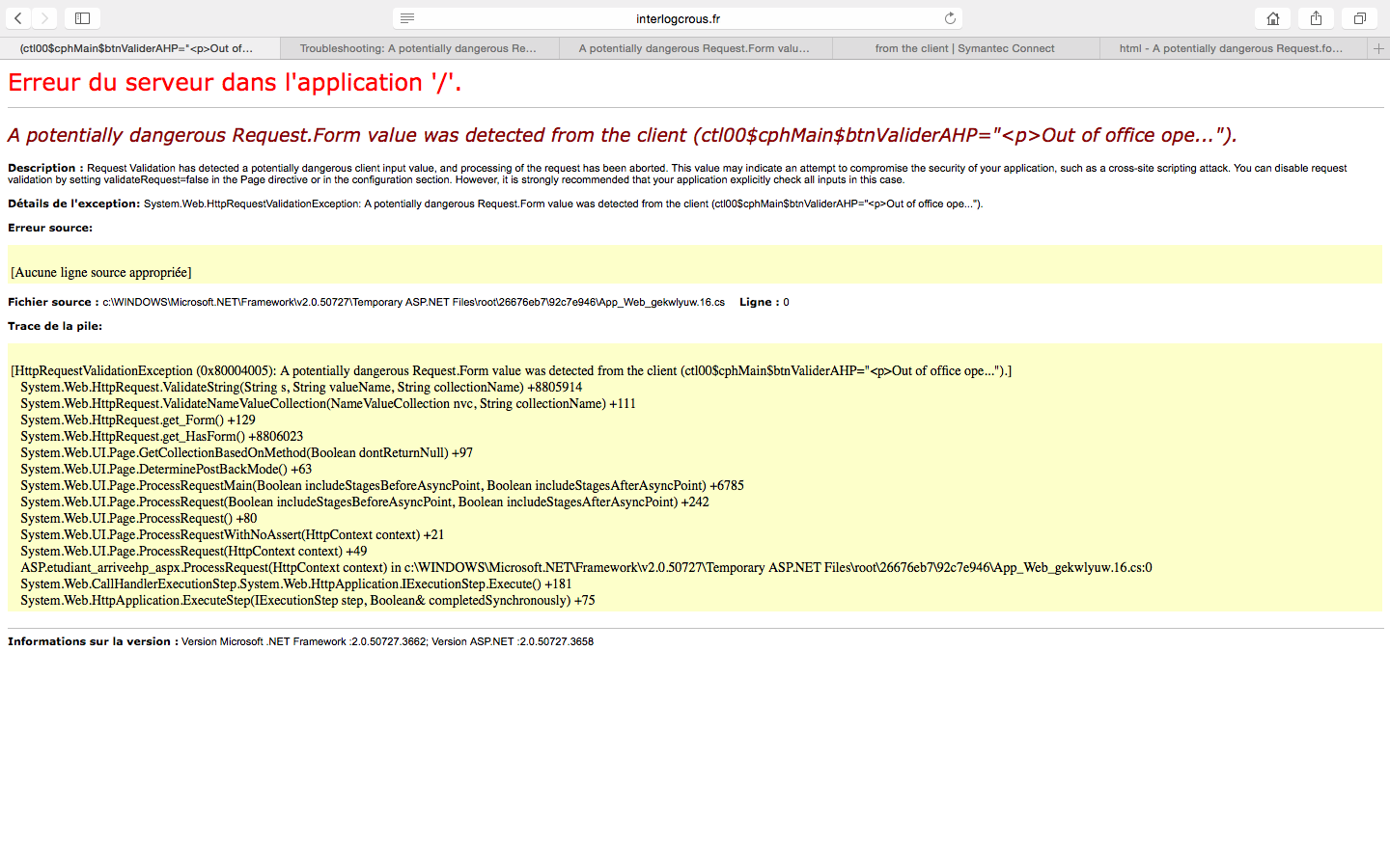 ขอความช่วยเหลือ เข้าเว็บไม่ได้ ขึ้นว่าA potentially dangerous Request.Form value was detected from the client...