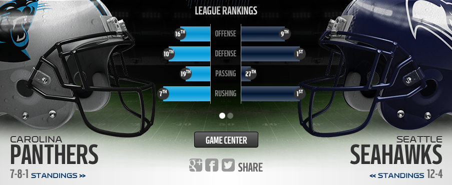 4th Seed CAROLINA PANTHERS VS 1st  Seed SEATTLE SEAHAWKS