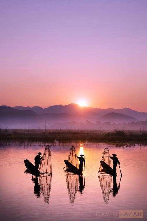 3.Fishermen on Inle Lake at sunrise