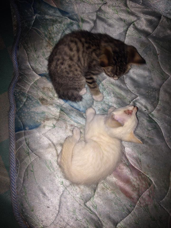 ตัวลาย กับตัวขาว เพศเมีย ทั้ง 2 ตัว ลักษณะแมวตัวสีขาวตาเสียข้างนึง อีกข้างปกติจร้า วอนผู้ใจบุญอุปการะน้องแมวไปเลี้ยงด้วยนะค่ะ