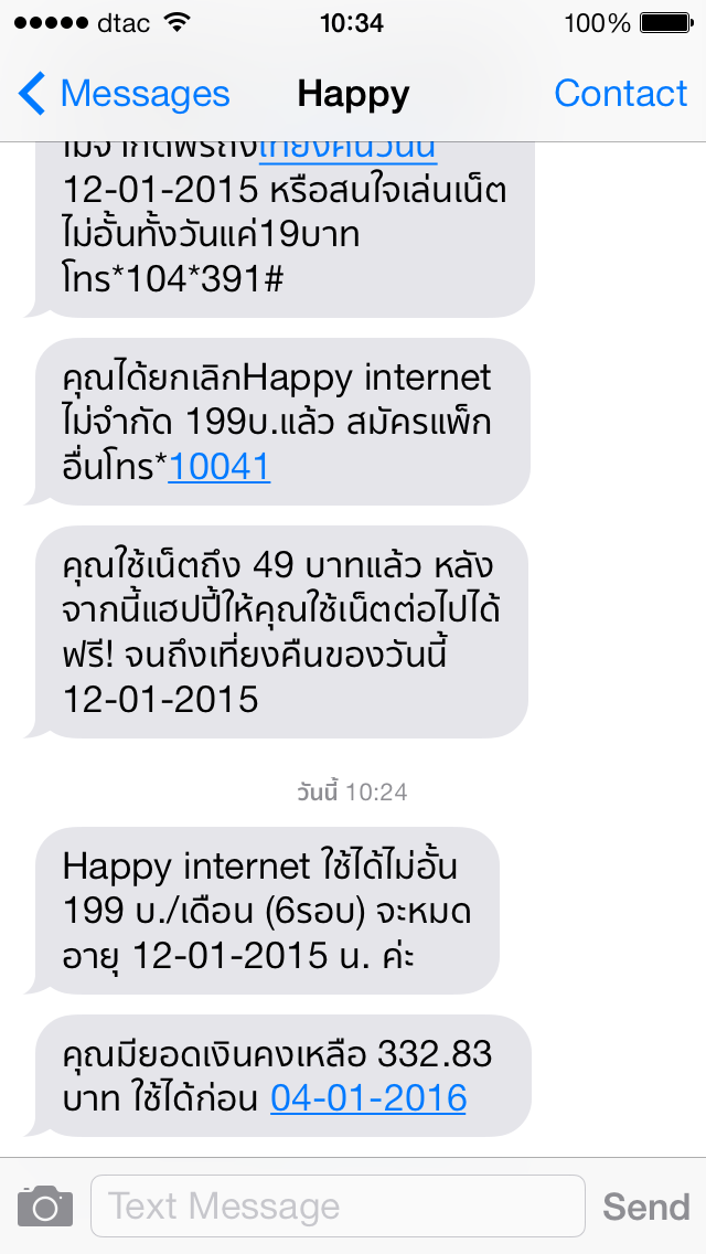 ผมใช้ SIM เติมเงินกับ DTAC มาเกิน10ปี ก็ไม่เคยมีปัญหาอะไร แต่เช้านี้ เนื่องจากPro Net 1.5 GB/เดือนที่ผมใช้ประจำหมดอายุ ก็เลยกดไปหมายเลขที่ได้รับ SMS จาก DTAC *104*853# ซึ่งผมเข้าใจว่าเป็น Pro Net 1.5