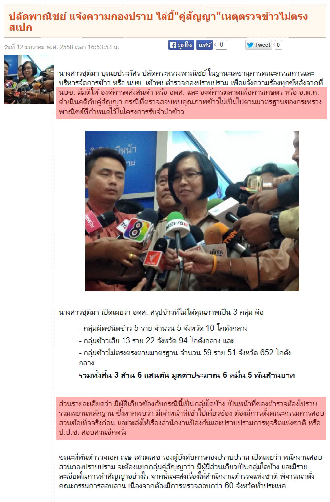 ปลัดพาณิชย์ แจ้งความกองปราบ ไล่บี้"คู่สัญญา"เหตุตรวจข้าวไม่ตรงสเปก