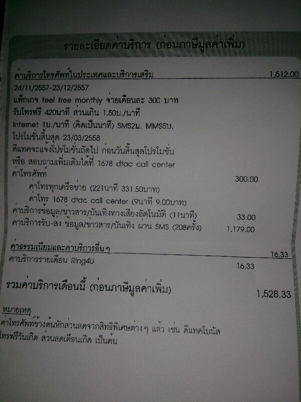 เบอร์โทรศัพท์ dtac ของแม่ผมโดนเรียกเก็บค่า sms ไป 11 ครั้ง ทั้งๆที่ไม่ได้สมัคร ผมต้องมากด *137 เพื่อยกเลิกทุกครั้ง หลังจากบิลค่าโทรมา เป็นแบบนี้มา 3-4 รอบบิลแล้วครับ คนแก่เค้าก็ไม่สบายใจ แกก็เครียดบอก