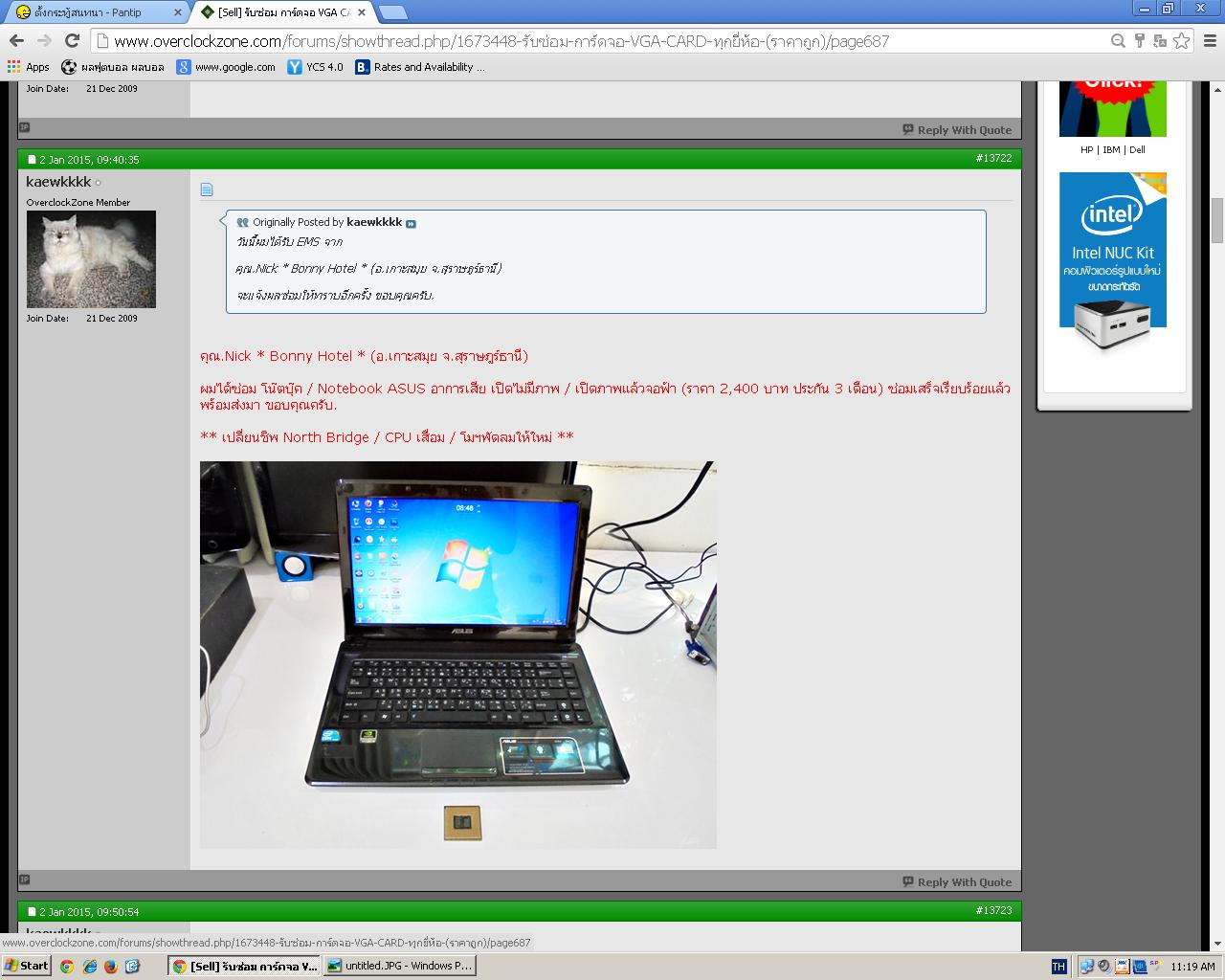 หลังจากผมโอนเงินและได้รับของเรียบร้อยแล้ว ผมก็ลองเอาnote bookที่ซ่อมเสร็จแล้วมาลองเปิดใช้งาน ปรากฏว่าเปิดไม่ติดไฟไม่เข้าลองเปลี่ยนที่ชาทแบตอันใหม่แล้วก็พยายามเสียบชาททิ้งไว้ก็ยังเป็นเหมือนเดิม ก็เลยส่งไปให้เขาดูอีกครั้ง พร้อมกับไปโพสบอกในกระทู้อีกครั้ง