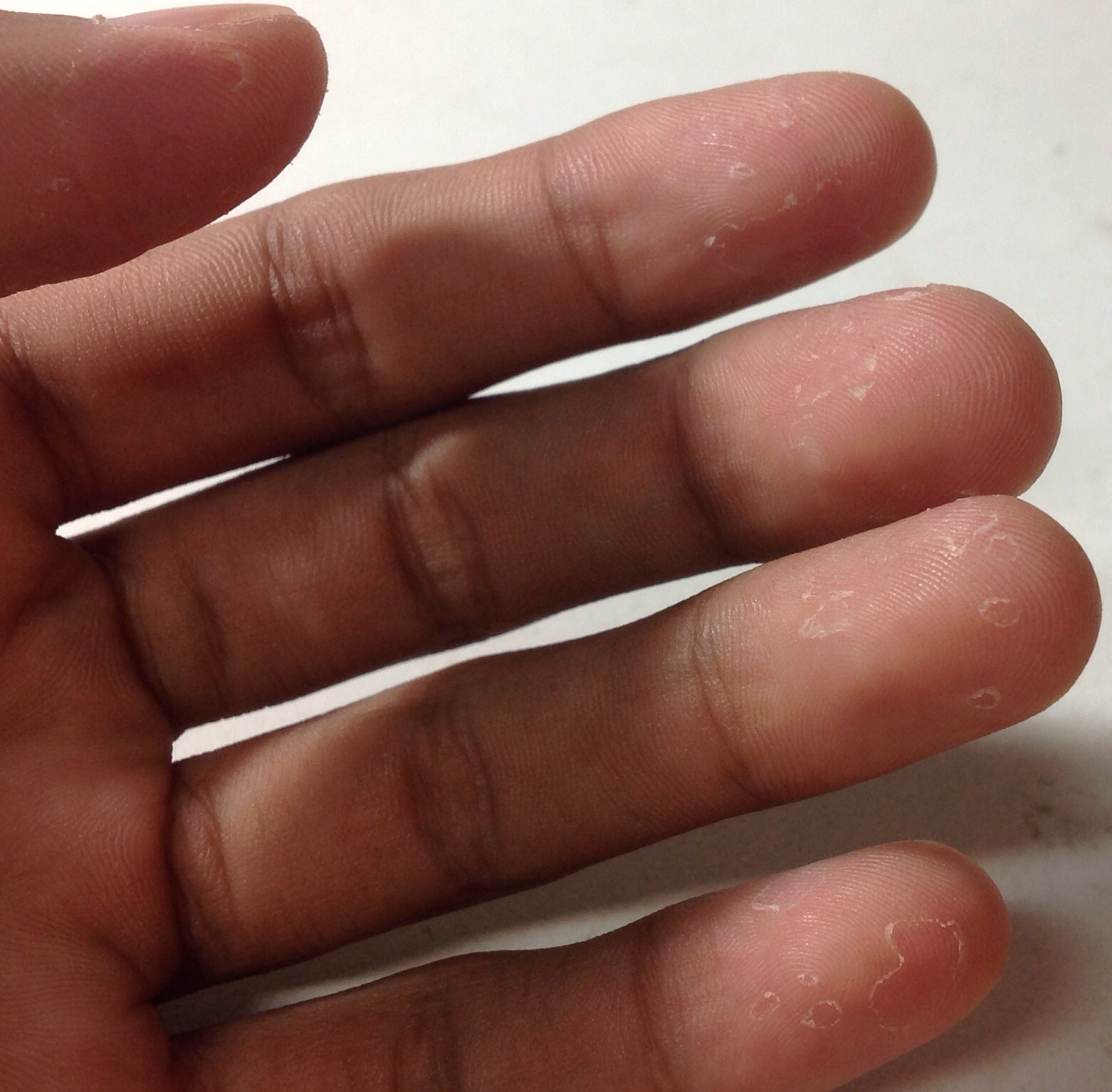นิ้วลอกมาประมาณ 2 อาทิตย์แล้วครับไม่หายสักที มันรู้สึกสากและทรมานมาก เป็นทุกนิ้วเลยครับ ต้องทำยังไงบ้างครับ ขอบคุณ มากมาก ครับ