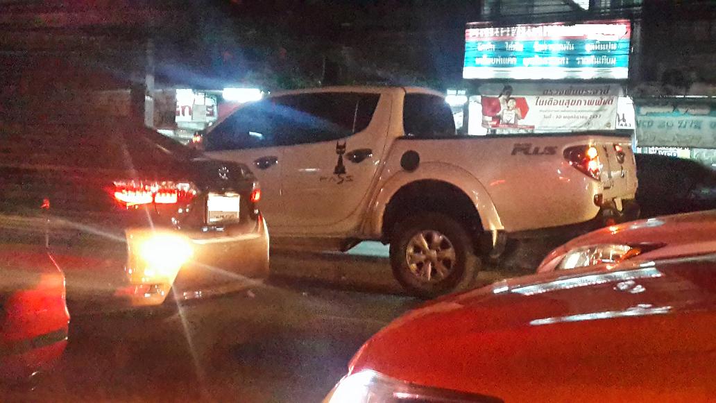 จึงเห็นว่า มีกระบะคันนี้ พยายามขับข้ามเกาะกลางอยู่ ไม่รู้จะรีบมากไปไหน รอไม่ถึงสามนาทีก็ได้เลี้ยวกลับรถได้แล้ว