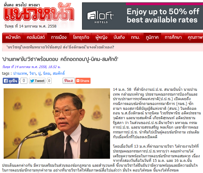 ลับลวง-ถอดถอน "สมศักดิ์-นิคม-ยิ่งลักษณ์" เมาธ์กันว่า รอด 1 คดี ร่วง 1 คดี วันที่ 17 มกราคม พ.ศ. 2558 เวลา 00:20:00 น. ลับลวง-ถอดถอน คอลัมน์ นิวส์โน้ต มติชนรายวัน 16 มกราคม 2557 3