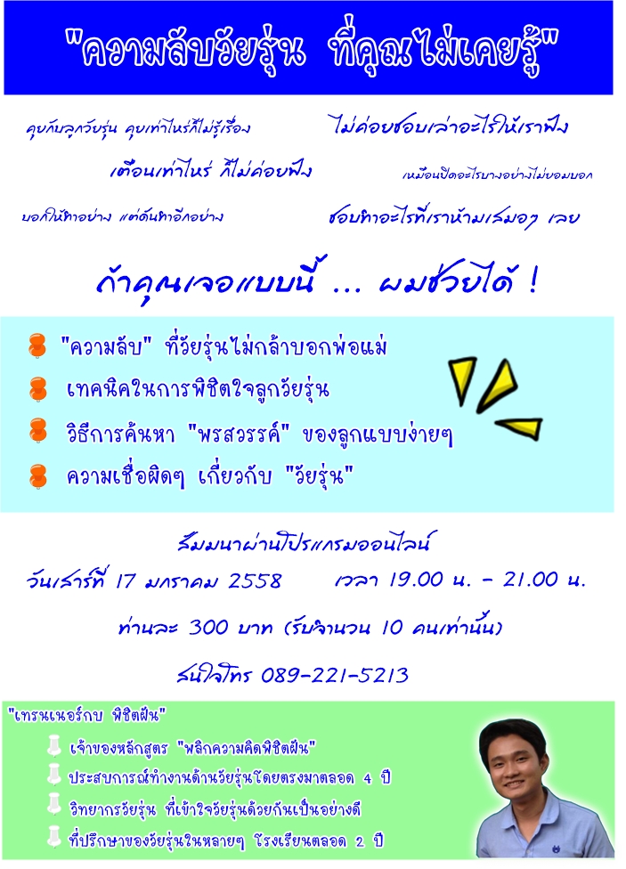 สุดยอดสัมมนาออนไลน์ "เรื่องวุ่นๆ ที่ วัยรุ่นไม่เคยบอกคุณ"