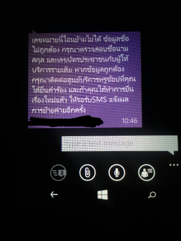 คือเราจะย้านค่ายเบอร์เดิมอะ จากดีแทคไปทรูพอเราไปติดต่อที่ศูนย์ทรูแล้ว ได้ซิมทรุมาแล้วรอสัญญาณตัดทรูบอก สักสามวันก็ส่งข้อความมาว่าคล้ายๆกับดีแทคว่าการลงทะเบียนซิมของเราผิด อาจจะเป็นชื่อผิดหรือเลขบัตรปร