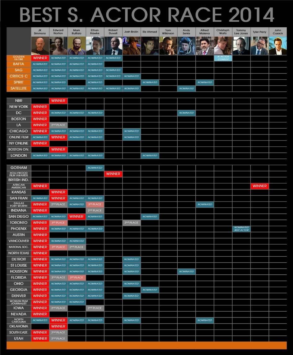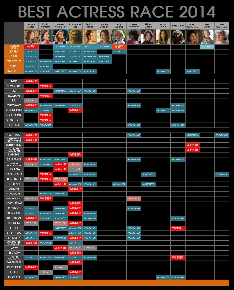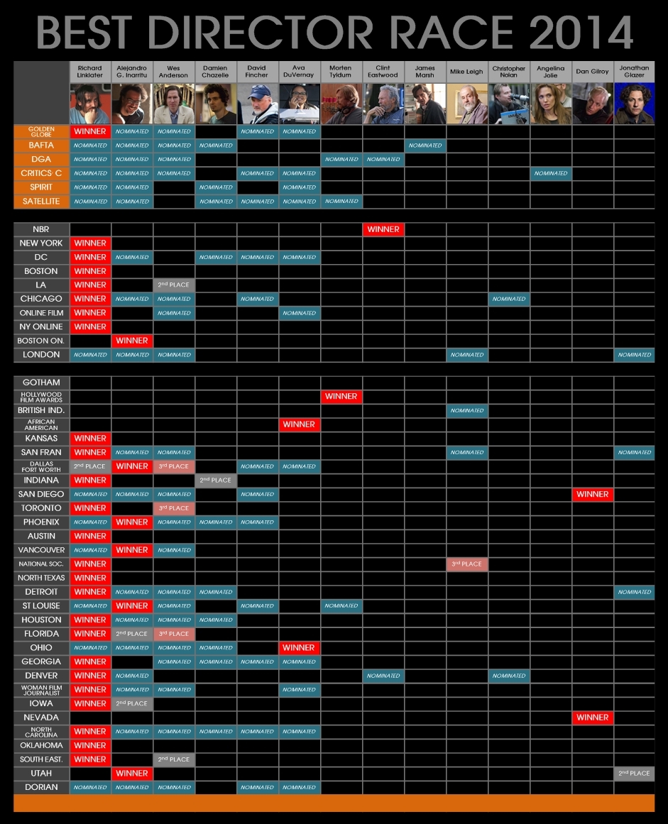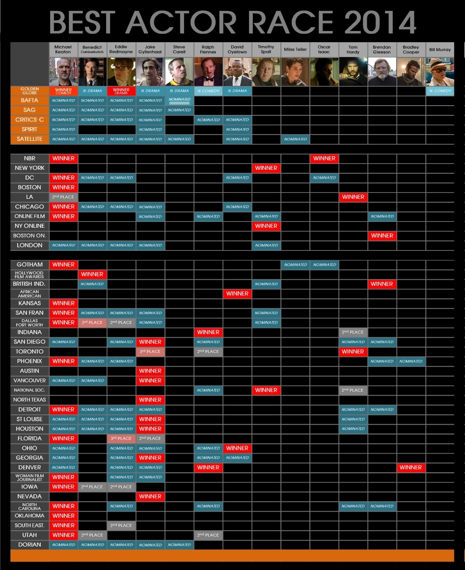 ตารางสรุปรางวัลภาพยนตร์ 6 สาขาสำคัญ ก่อนการประกาศรายชื่อผู้เข้าชิงออสการ์ 2015