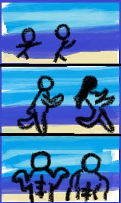 เป็นวัยรุ่นหญิงชาย วิ่งไล่กันบนชายหาด/ทะเล >///<