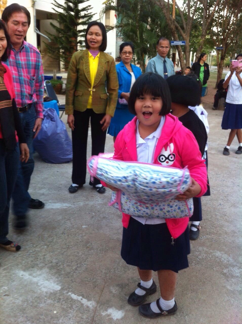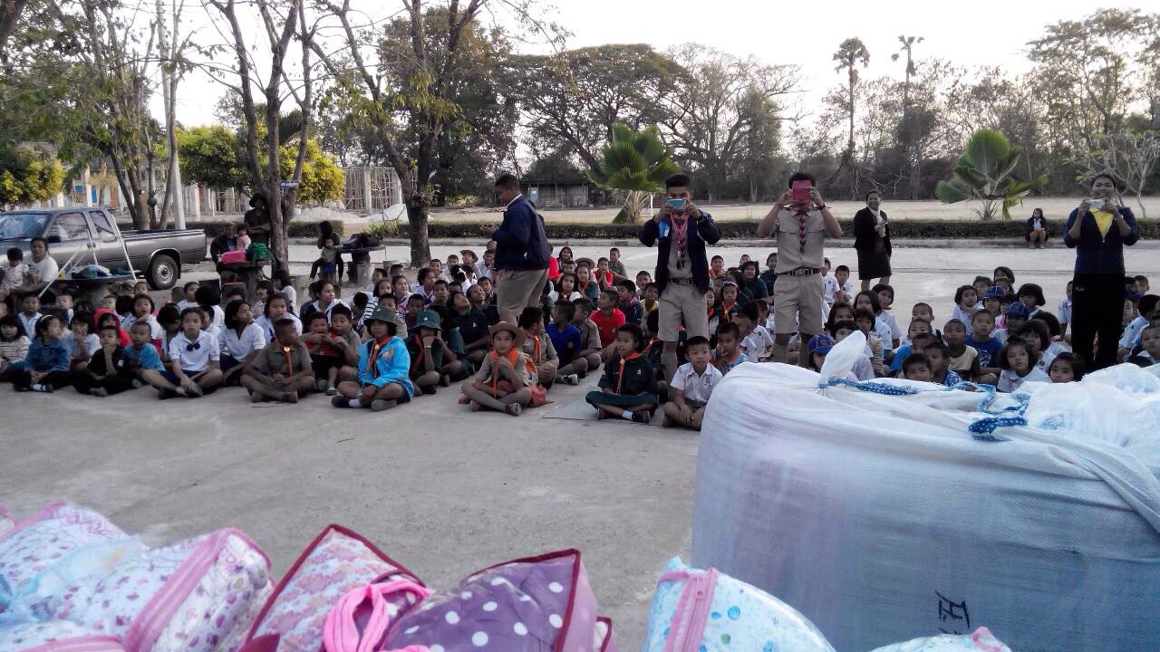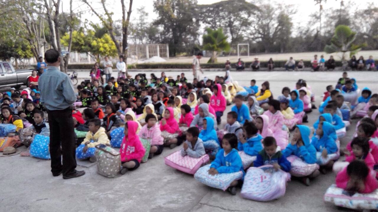 2. เดินทางไปยังโรงเรียนและติดต่อขออนุญาตคุณครู เพื่อแจกเสื้อกันหนาวและผ้าห่มให้นักเรียน