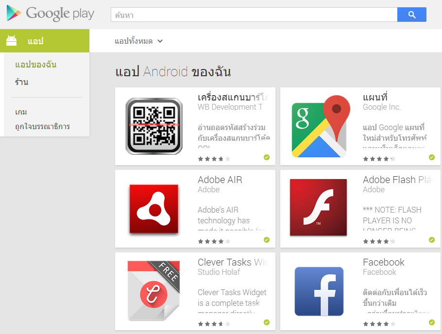 เมื่อเราติดตั้ง app ผ่าน google play ทาง เว็บไซต์แล้วจะมีเครื่องถูก (ติดตั้งแล้ว) ต่อไปถ้าเราถอนการติดตั้งที่บนอุปกรณ์ ด้วย google play แล้ว กลับมาที่ google play ทาง เว็บไซต์ ก็ยังมีสถานะเป็นมีเครื่องถูก (ติดตั้งแล้ว)