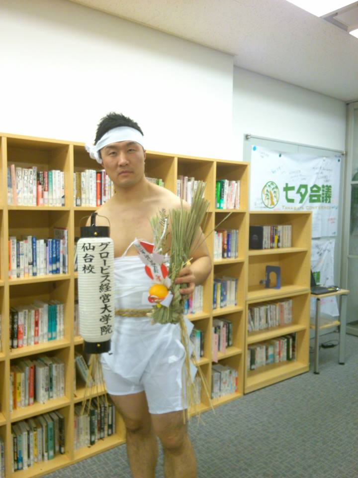แต่จริงๆแล้วก็ไม่ถึงกับแก้ผ้ากันเลยหรอกค่ะ นี่คือชุดของผู้ร่วมขบวนนมัสการเทพ นายแบบคือเพื่อนของจขกท.ที่กำลังจะออกไปร่วมพิธีเมื่อค่ำวันที่ 14 มค.ที่ผ่านมานี้เองค่ะ เดือนมค.ของญีปุ่นเป็นช่วงหน้าหนาว ที่เซนได อุณหภูมิข้างนอกราวๆ 3℃ เพื่อนคนนี้จะเดินจากหน้าสถานีเซนไดไปยัง Osaki Hachimangu ซึ่งเป็นเหมือนศาลเจ้าหลักเมืองของเซนได