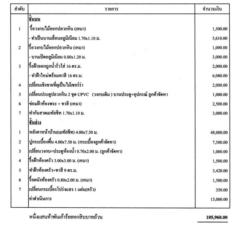 รบกวนช่วยดูราคาซ่อมแซมบ้านหน่อยครับ
