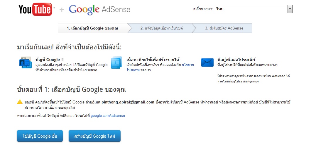 สอบถามเกี่ยวกับ Youtube partner และ Google AdSense