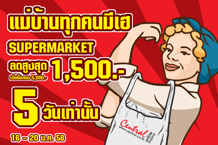 ลดหนัก ลดจริง 5 วันเท่านั้น 16-20 มกราคม สินค้า Supermarket เมื่อซื้อสินค้าครบ 5,000 ลด 1500 และ 3,000 ลด 600