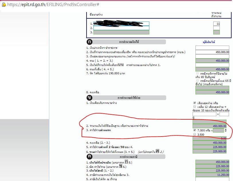 ทีนี้พอจะยื่นแบบในเว็บของกรมสรรพากร ในช่องหักค่าใช้จ่าย 7000* จำนวนปี