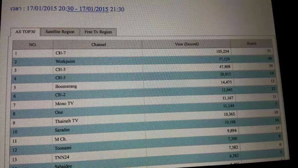 เรทติ้งการรับชมทีวีดิจิตอลทั่วประเทศ ช่อง7ยังเป็นอันดับ1 ตามด้วยช่อง3 /ช่อง workpoint /ช่อง8และช่องโมโนทีวี #ไทยรัฐ