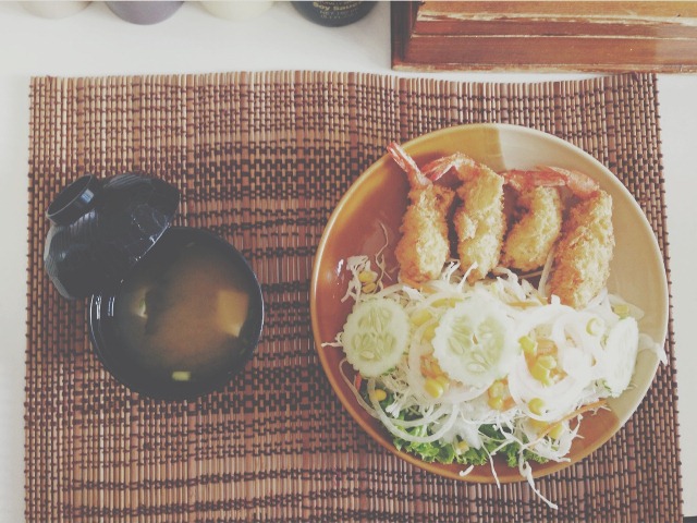 เริ่มที่ สลัดกุ้งทอด อร่อยค่ะ น้ำสลัดให้เราราดเอง จะเป็นลักษณะมายองเนสมากกว่า