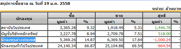 สรุปการซื้อขาย ณ วันที่ 19 ม.ค. 2558
