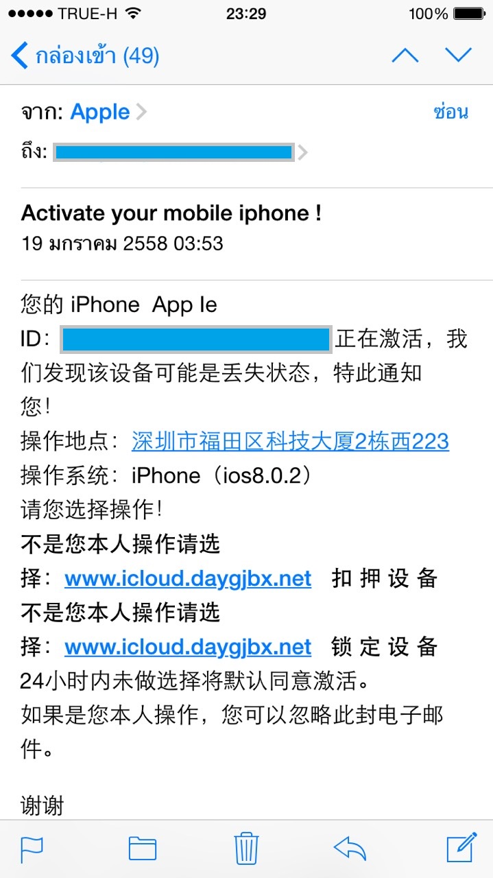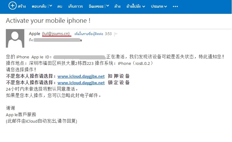 iPhone หายที่จีน แล้วถูกเมล์มาหลอกให้ Activate จะแจ้ง Apple ให้ทราบปัญหานี้อย่างไรได้บ้างครับ?