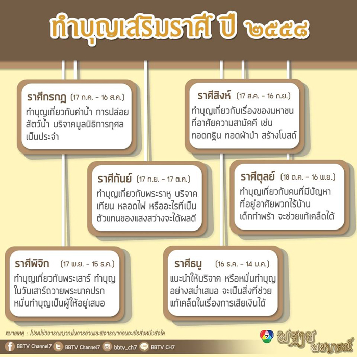 อีก 6 ราศีที่เหลือ อ่านอันนี้ราศีตุลย์ของเราบอกให้ทำบุญเกี่ยวกับเด็กกำพร้า เคยอ่านที่อื่นก็มีบอกให้ทำบุญเกี่ยวกับแสงสว่าง เอาจริงๆทำบุญตามกำลังเราแบบไหนก็ได้บุญแหละเนอะ