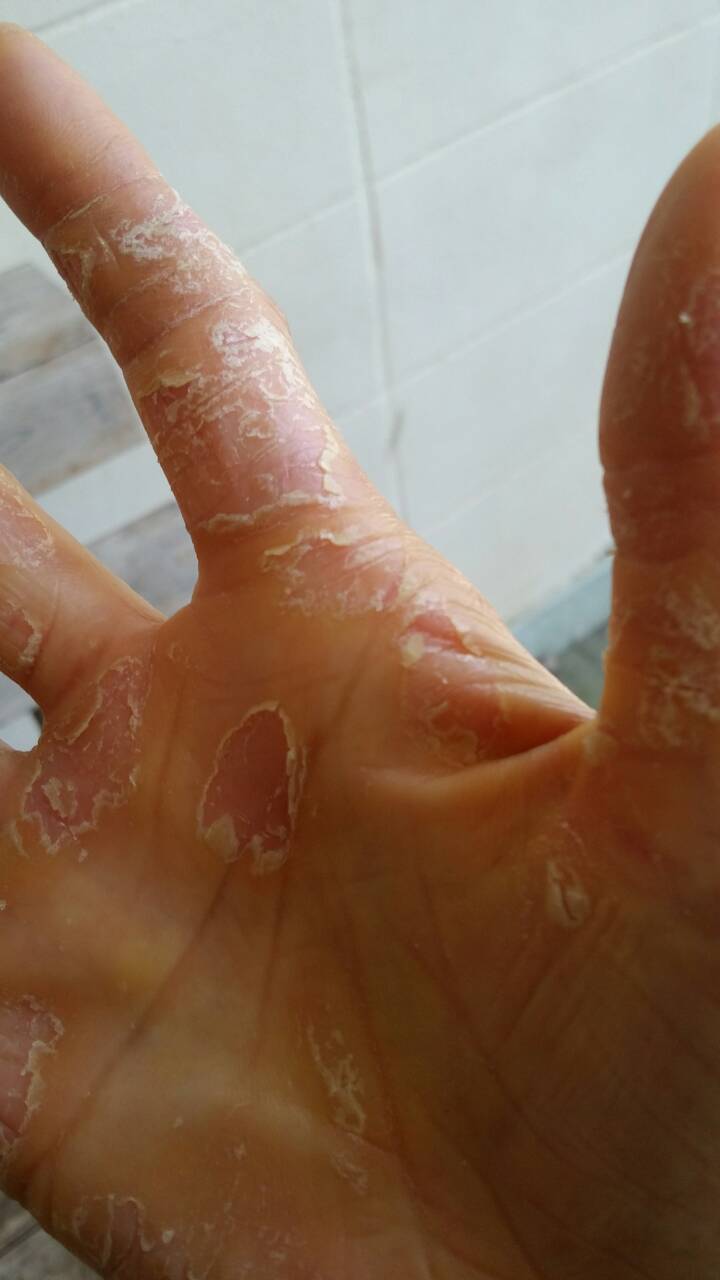 ทรมานมาสี่ปีแล้ว หมอรักษาไม่ได้ ที่เห็นเอาพลาสเตอร์พันไว้เพราะหนังมันปริ แตก เจ็บมากค่ะ เราใช้ ยูเรีย 20 % และเจล วาสลีน ออย ใส่ถุงมือตลอดระหว่างวัน ครึ่งมือ กอ่นนอนก็ทายา ทาครีม แล้วใส่ถุงมือแบบเต็มทั้งมือ อาบน้ำก็ใส่ถุงมือยางและใช้หนังยางรัดข้อมือกันน้ำเข้า และไม่ใช้สบู่ ไม่ใช้ยาสระผมไปสระที่ร้าน และซักผ้าด้วยเครื่อง ดังนั้นจึงไม่ทราบว่าดิฉันควรทำอย่างไร รักษาที่ไหนได้บ้าง ช่วยด้วยนะคะ ถือว่าเอาบุญ
