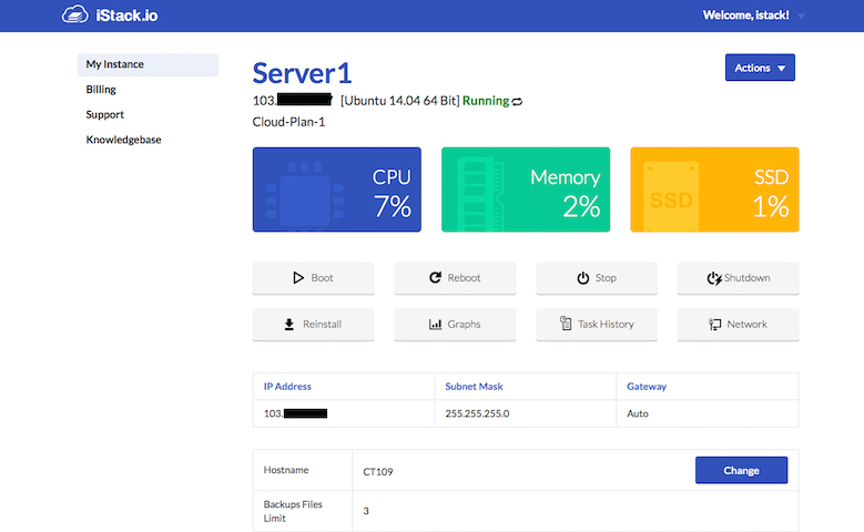 โดยระบบการใช้ต่างๆนั้นไม่ยุ่งยากเลยครับ ทาง istack.io มีระบบจัดการต่างๆให้พร้อมไม่ว่าจะเป็น การสร้างเครื่องจาก template ต่างๆ หรือ snapshot , reboot , firewall , upgrade และระบบอื่นๆอีกมากมาย ทั้งยังรองรับการจ่ายเงินผ่านทางช่องทางต่างๆไม่ว่าจะเป็น paypal , paysbuy อีกด้วย