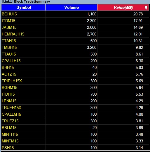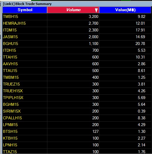 รายงาน 20 อันดับ SSF ที่ทำรายการ Block Trade 5/3/58 20 อันดับแรก