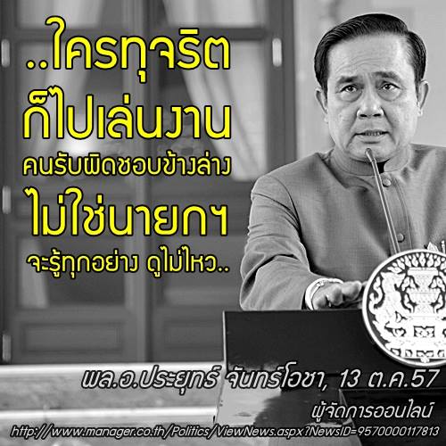 ท่านพูดได้เข้าที...หรืออีกนัยหนึ่งคือสอบให้พบการกระทำผิดในระดับปฏิบัติการ แล้วลงโทษตามกฏหมายกันไป...นายกฯดูไม่ทั่วถึงหรอก....55555
