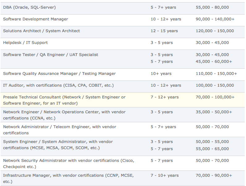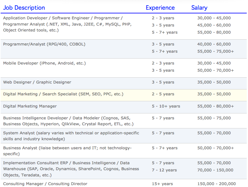 ค่าตัวของนับรบไอที&โปรแกรมเมอร์สายต่างๆ2014-ปัจจุบัน