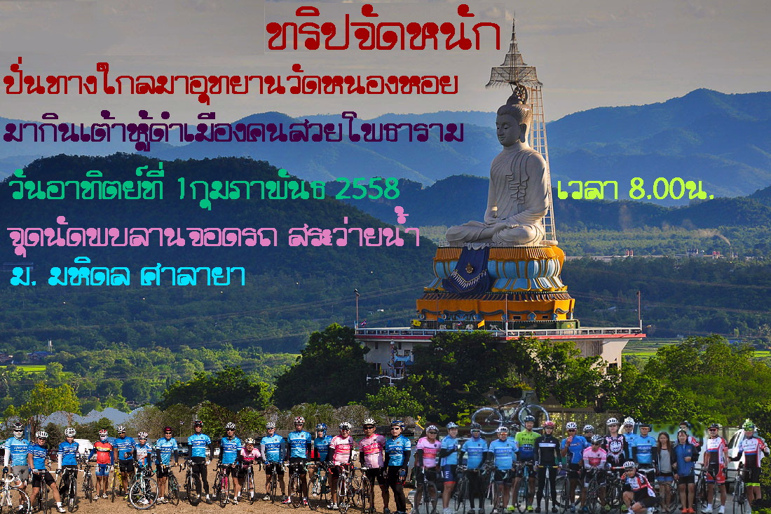 กลุ่มรามอินทราชวนทริปจัดหนัก ปั่นทางใกลไปอุทยานวัดหนองหอยและกินเต้าหู้ดำของดีเมืองโพธารามวันอาทิตย์ที่1กุมภาพันธ์2558 เริ่มสตาร์ทจาก ม.มหิดล ระยะทางไปกลับ 162km ดูรายละเอียดที่เวป ลิ้ง http://www.thaimtb.com/forum/viewtopic.php?f=57&t=1151476