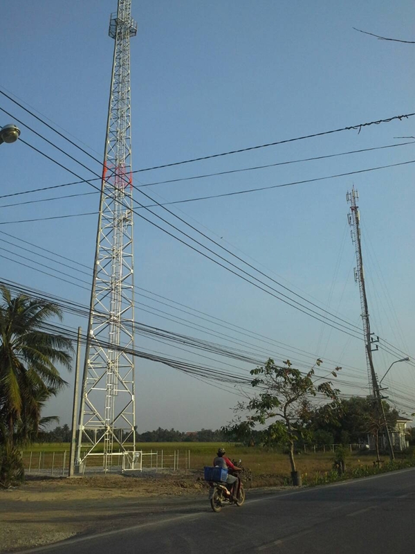 หน้าหมู่บ้านผม มีเสามาตั้งใหม่ครับ เพิ่งสร้างเสร็จหมาดๆเลย มีแต่เสา ยังไม่ได้ตั้งหม้อ ยังไม่ได้เดินสายไฟ ห่างไปประมาณ 50 เมตร เป็นเสาของทรูมูฟ (เสาด้านขวาของรูป)